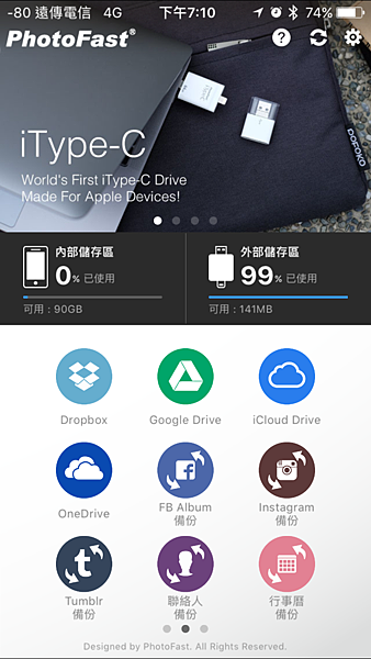 那可以透過PhotoFast APP 當中的備份功能進行備份